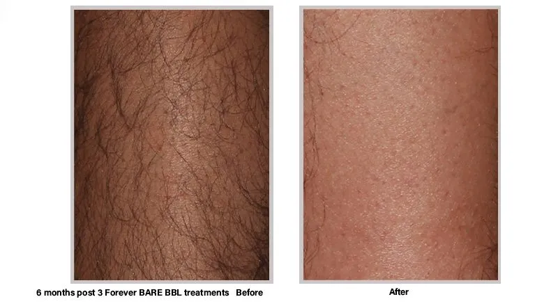 Forever Bare BBL is a comfortable treatment with virtually no downtime. During the treatment, pulsed light delivers photothermal energy to hair follicles. The rapid, short pulses of light or photothermal energy causes the hair follicle to stop producing hair without harming any surrounding tissue.